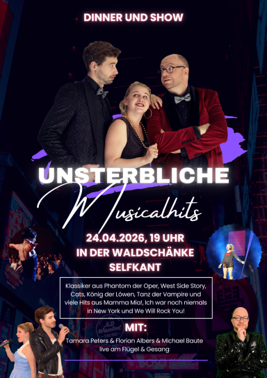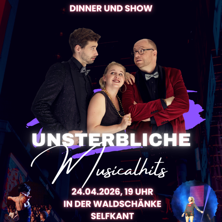 Mit der Dinner-Show „Unsterbliche Musicalhits“ erwartet Sie ein stimmungsvoller Abend voller Humor, Emotionen und unvergesslicher Melodien.